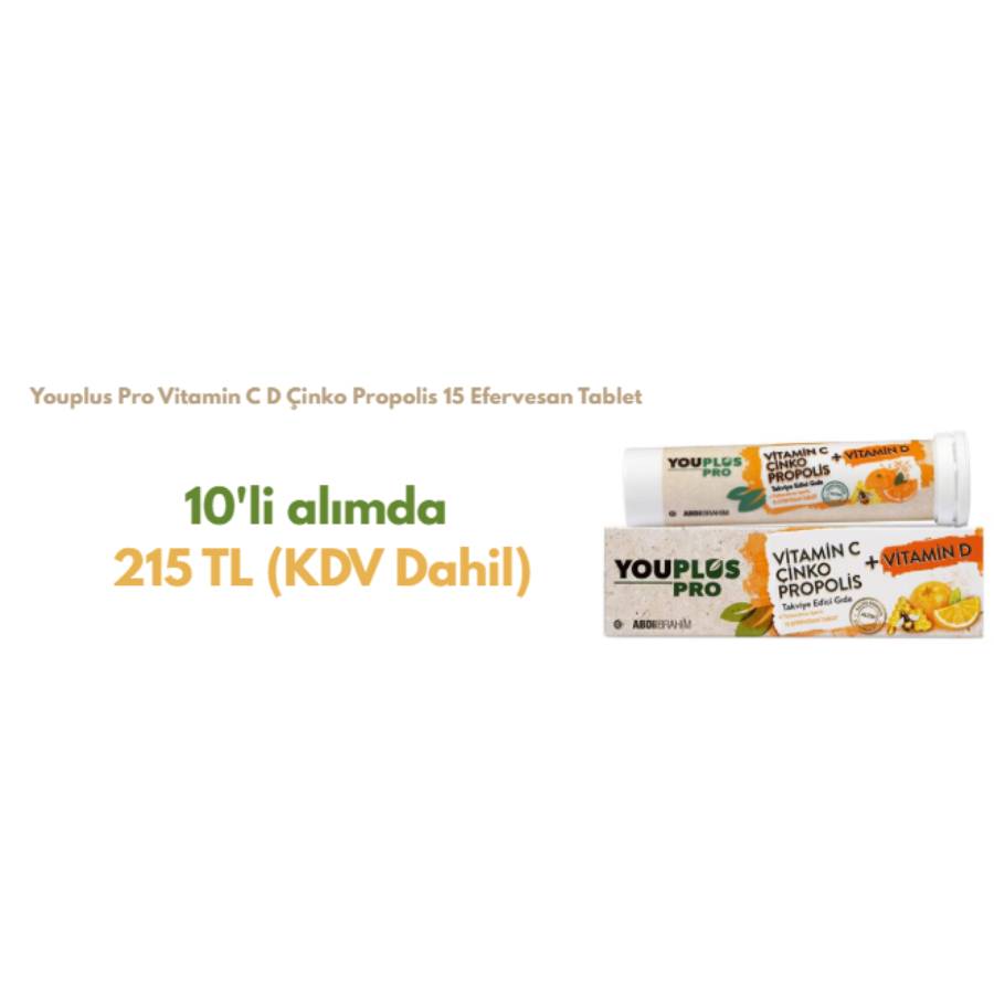 Youplus Pro Vitamin C D Çinko Propolis 15 Efervesan Tablet - 10'Lu